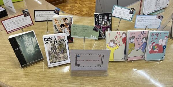 貸出・返却カウンターの隣に、ドラマ化や映画化された本を特集する